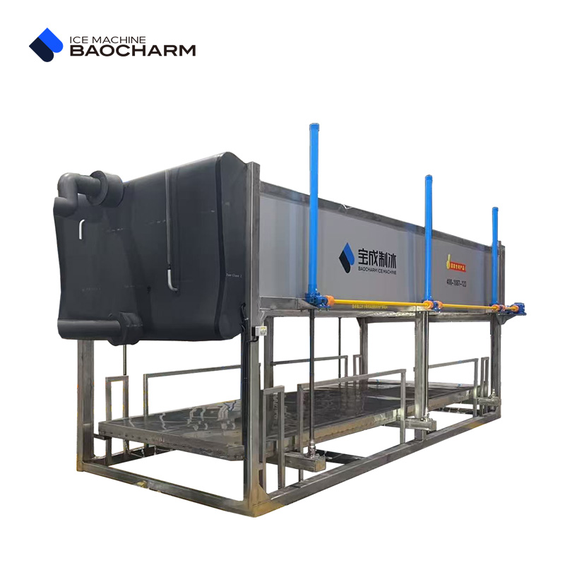 BAOCHARM Máquina industrial para fabricar bloques de hielo transparente con enfriamiento directo Está diseñado para una producción confiable y a gran escala de productos de primera calidad. bloque de hielo transparenteGracias a su avanzada tecnología de enfriamiento directo, produce bloques de hielo de alta pureza y fusión lenta, esenciales para la conservación de mariscos, la exhibición en hostelería, el procesamiento de productos químicos y más. El modelo BCTM-3T combina una construcción robusta con un funcionamiento automatizado para una producción constante y un mantenimiento mínimo.